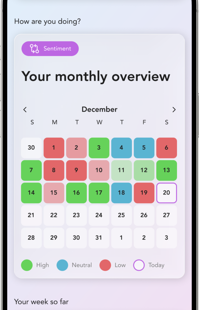 Ekko traces emotional threads across days and weeks to prove that the moments that feel isolated rarely are. By visualizing these shifts, the app helps you see patterns and cycles you may have missed, allowing you to understand the deeper connections within your lived experiences.